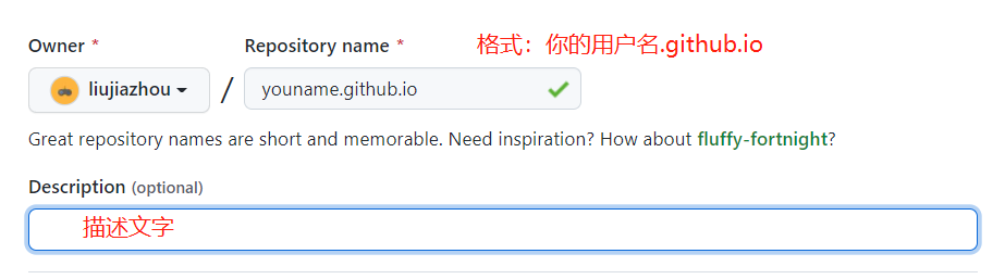 仓库名字用户名.github.io描述可填可不填 其余保持默认